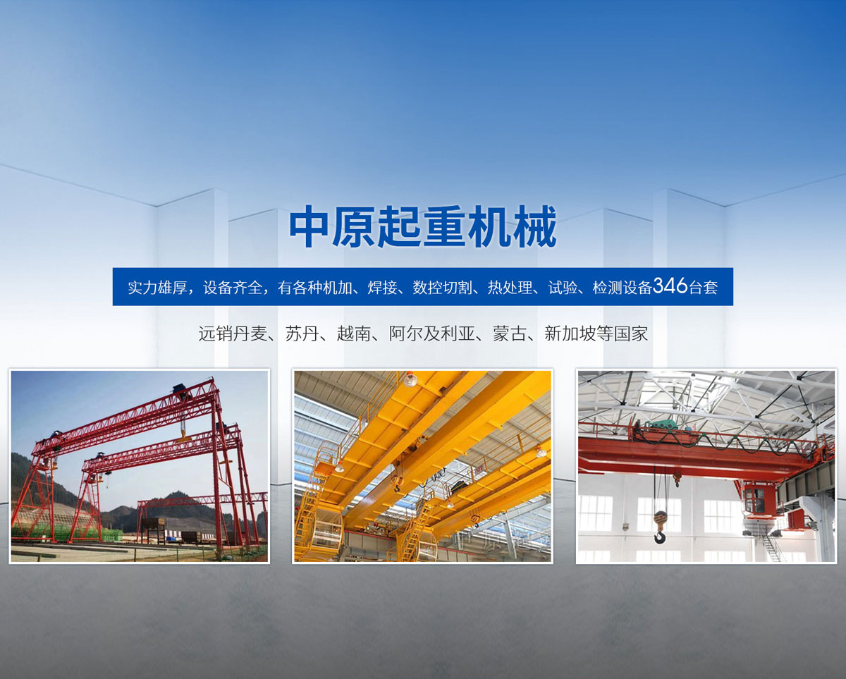 新鄉(xiāng)市中原起重機械有限公司成立于2000年,地處中原,輻射全國28個省市自治區(qū),設(shè)外埠經(jīng)銷處、辦事處268個。產(chǎn)品行銷工礦、建材、化工、冶金、電力、交通、鐵路、油田、港口等各個行業(yè)。遠銷丹麥、蘇丹、越南、阿爾及利亞、蒙古、新加坡等國家。  公司實力雄厚,設(shè)備齊全,有各種機加、焊接、數(shù)控切割、熱處理、試驗、檢測設(shè)備7臺;有機加工、熱處理、單、雙梁橋門機生產(chǎn)、檢測、安裝等9個車間,研究中心、運輸公司、安裝維修服務(wù)公司等機構(gòu),?  主要產(chǎn)品有:LD型1~20噸電動單梁起重機系列產(chǎn)品;5~600噸通用橋式、門式、冶金、上旋轉(zhuǎn)下旋轉(zhuǎn)電磁吊、絕緣、抓斗、防爆起重機系列產(chǎn)品;LH3~100噸葫蘆雙梁系列產(chǎn)品;MH5~32噸葫蘆門式系列產(chǎn)品;0.5~40噸CD1、MD1鋼絲繩電葫蘆系列產(chǎn)品;HS1型0.5~20噸手動葫蘆系列產(chǎn)品;0.5~10噸環(huán)鏈電動葫蘆系列;0.5~40噸彎道電動葫蘆系列產(chǎn)品;裝卸橋、造船門機、架橋機、鑄造吊和水電大噸位起重機系列產(chǎn)品。  公司建立了強有力的質(zhì)量保證體系和生產(chǎn)過程的質(zhì)量控制系統(tǒng),嚴(yán)格執(zhí)行國家設(shè)計、生產(chǎn)標(biāo)準(zhǔn),有嚴(yán)格的生產(chǎn)工藝過程和標(biāo)準(zhǔn),嚴(yán)格的檢驗、檢測標(biāo)準(zhǔn)和手段。